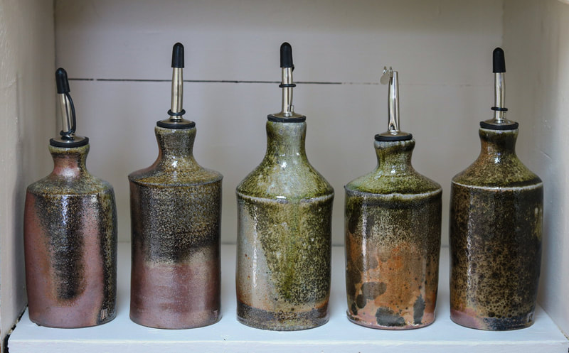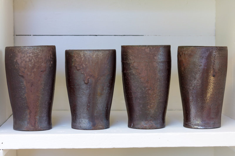Our work is intuitive and natural. The surface of our wood soda fired work is a direct reflection of the atmospheric firing process. The flames speak for themselves, as they decorate each vessel with beautiful unpredictable nuances. We think of our work as a way to celebrate the unsung heroes of nature's landscapes. By carefully selecting dark iron rich clay bodies and through the application of clay slips and shino glazes the fired results are reminiscent of outcrops, escarpments and road cuts. We find tranquility in the rustic.
